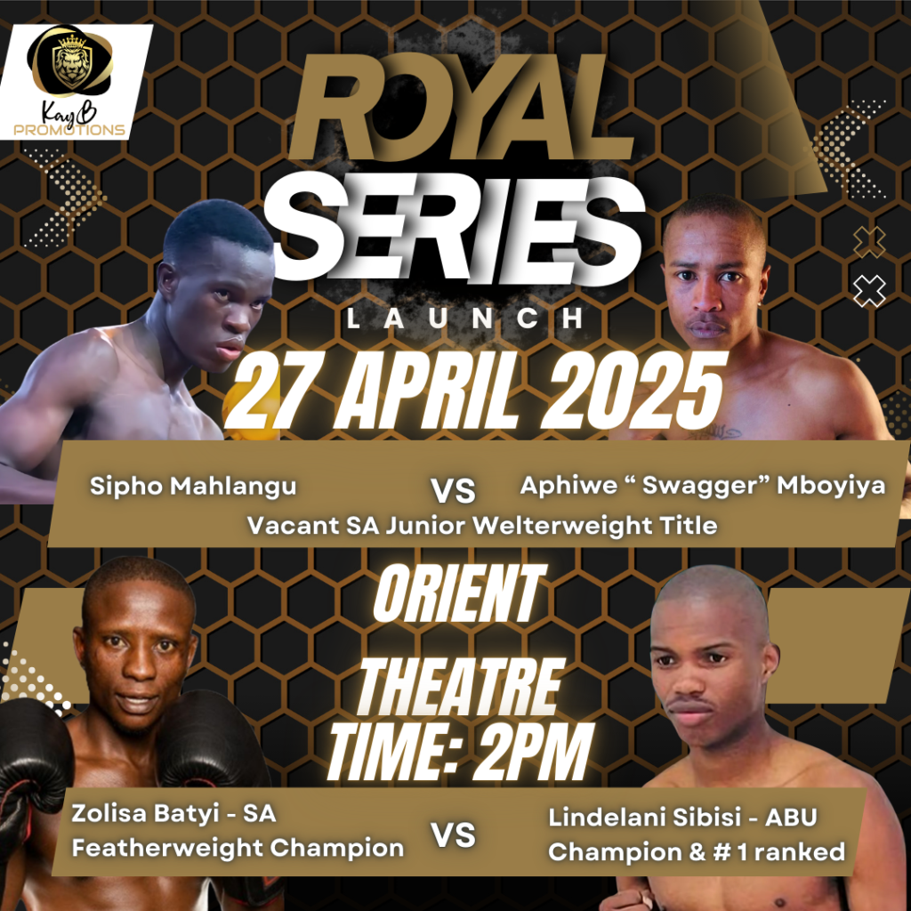 KayB Promotions proudly launches the Royal Series Challenge on 27 March 2025, marking the start of an exciting new era in South African boxing. This event will unveil the format, fighters, and sponsors, setting the stage for elite competition among eight top promoters. With exclusive previews, high-profile guests, and media coverage, the launch promises to elevate professional boxing to new heights. Don’t miss the beginning of a revolution in the sport!